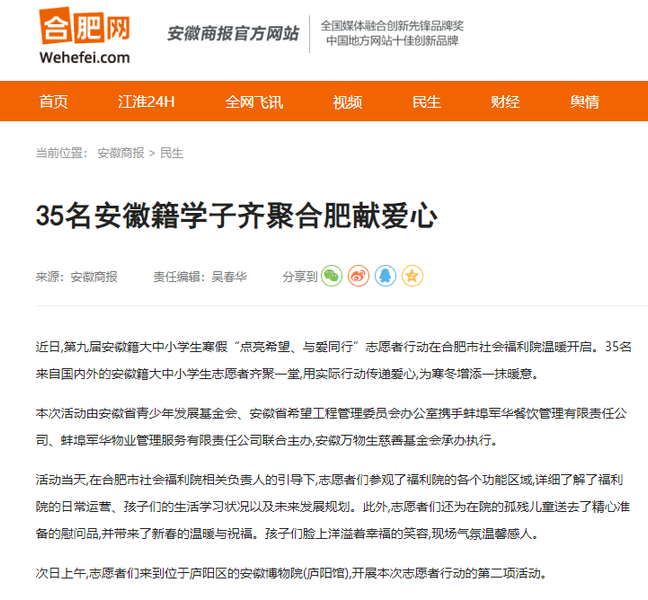 近日,999策略手机论坛版学子蒋中元在第九届安徽籍大中小学生“点亮希望,与爱同行”志愿者行动中的突出表现,荣获省级志愿服务表彰,并接受记者采访,报道在安徽商报、合肥网、安徽省青少年发展基金会等媒体平台刊登,展现了新时代青年的责任与担当。
