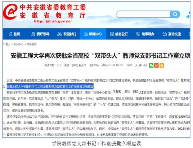 学院拥有省级MOOC课程3门、省级教学示范课3门,出版教材8部。教师队伍积极提升教学能力,近年来,在全国高校人工智能大数据教育教学联盟创新奖中荣获“人工智能专业创新高校奖”“教学创新奖”“人物创新奖”等荣誉,获中国高校机器人实验教学创新大赛、全国高校教师技能创新大赛、全国高校教师教学创新大赛产教融合赛道安徽赛区一等奖等奖项近20项。